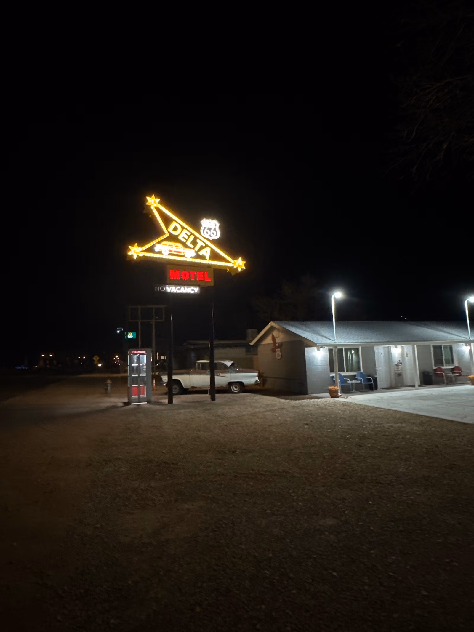 Route 66 Delta Motel is a 13 room mom & pop motel that was built in 1962. The motel features themed rooms including Beatles, Elvis, Harley Davidson and more. Many updates have been done in recent years to make the Route 66 experience at the Delta one to remember.