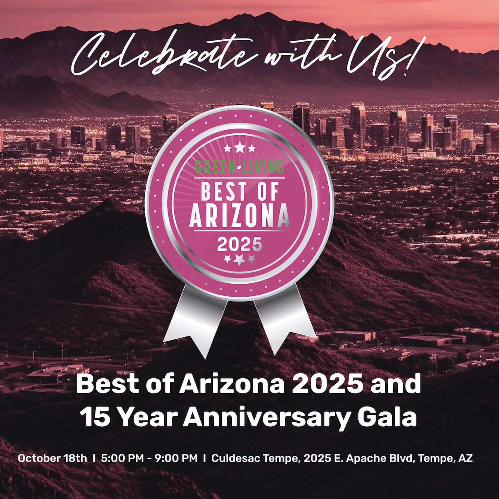 Get ready for an unforgettable evening! Join us on October 18th from 5:00 p.m. to 9:00 p.m. at Culdesac in Tempe, AZ, for the 2025 Green Living Best of Arizona Awards—celebrating the 15th anniversary of the Best of Arizona Gala. This is your chance to celebrate the best in sustainable living and innovation across our beautiful state.