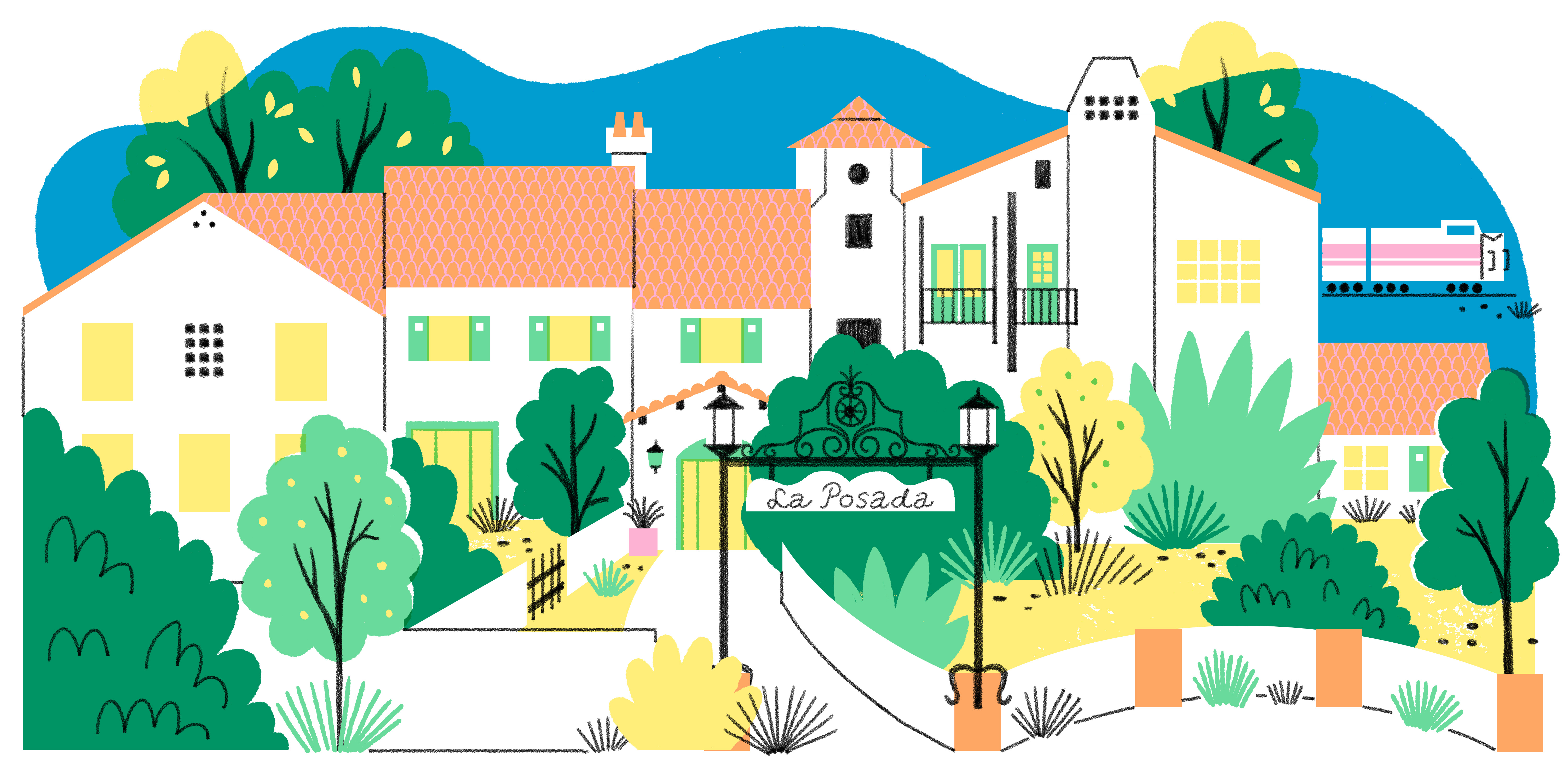 A former Harvey House, La Posada opened in 1930alongside the railroad tracks, where trains still rumble by. Note Southwestern touches such as rounded archways and Saltillo tile put in place by the hotel’s designer, Mary Colter.