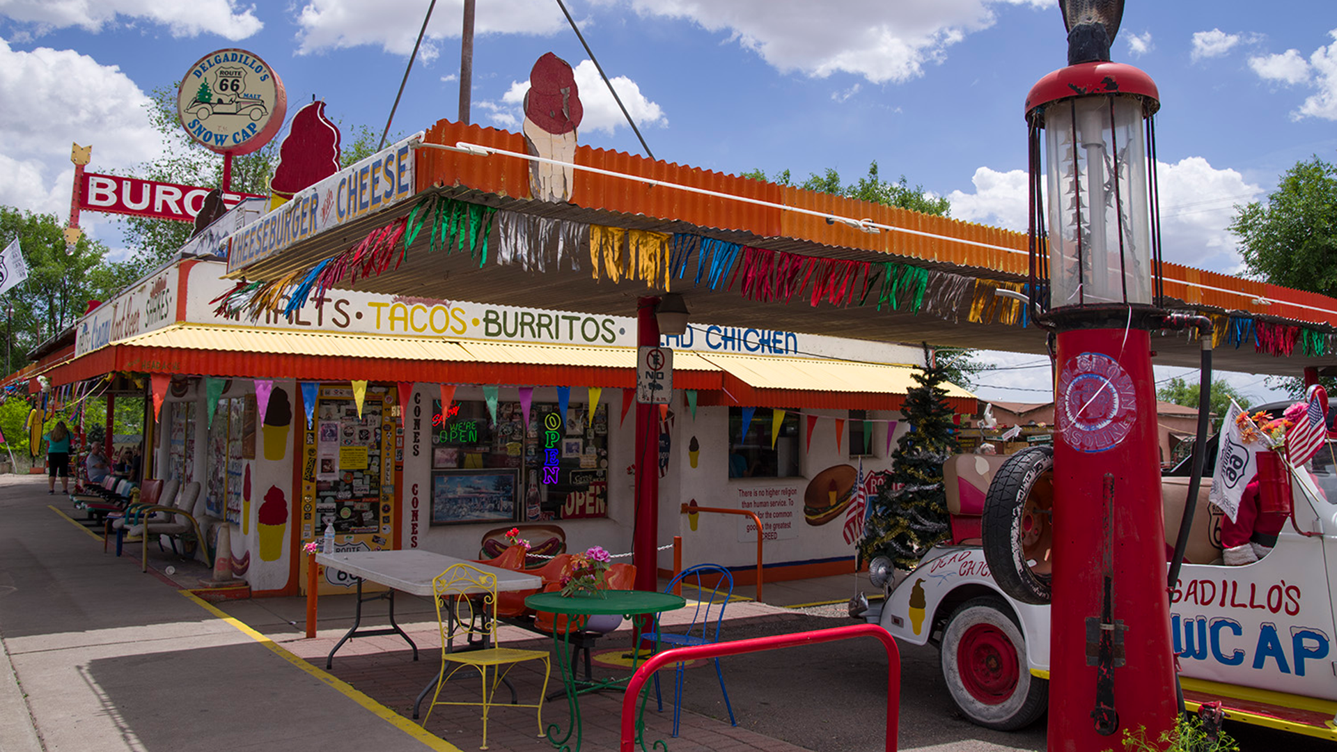 Afternoon brings you to the longest contiguous drivable stretch of Route 66, Seligman to Kingman. Seligman is the quirky jackpot, filled with wondrously kitschy photogenic delights, and that's before you experience Delgadillo's Snow Cap Drive-In, world famous for bad counter jokes and tasty milkshakes.